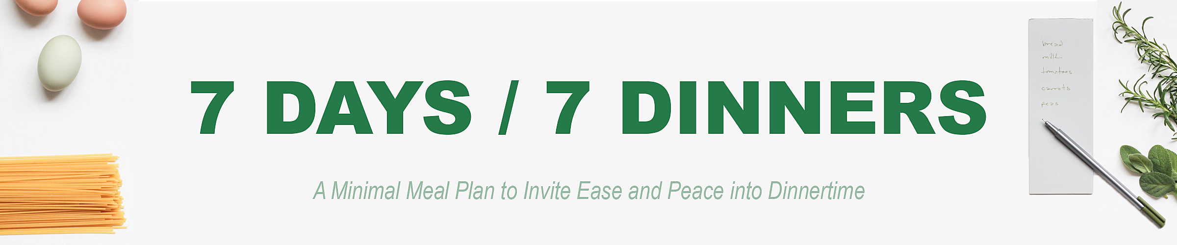Seven Days, Seven Dinners is a framework that provides the instruction and tools for your family to create a personalized minimal meal plan that works with your budget, skill level, and dietary preferences!